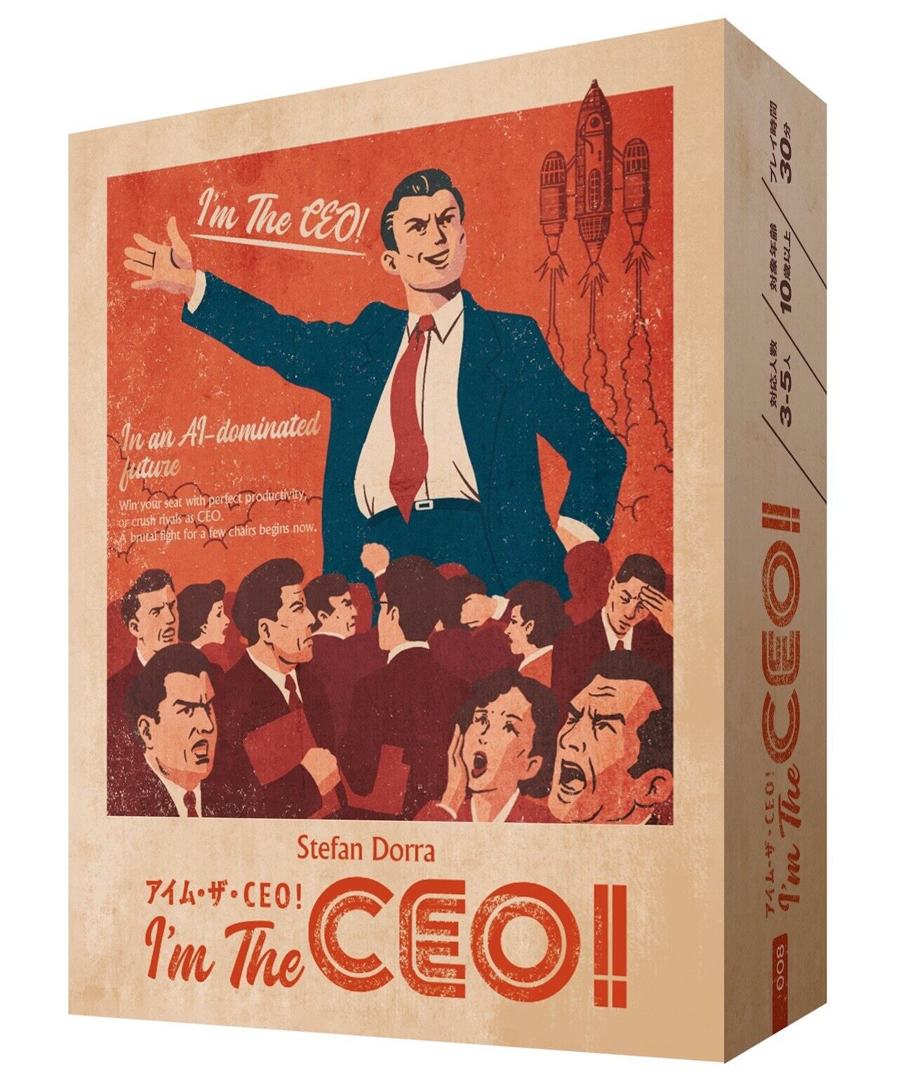 「アイムザCEO!」はAIが発展した未来が舞台の、予測と妨害に満ちたトリックテイキングゲームです。